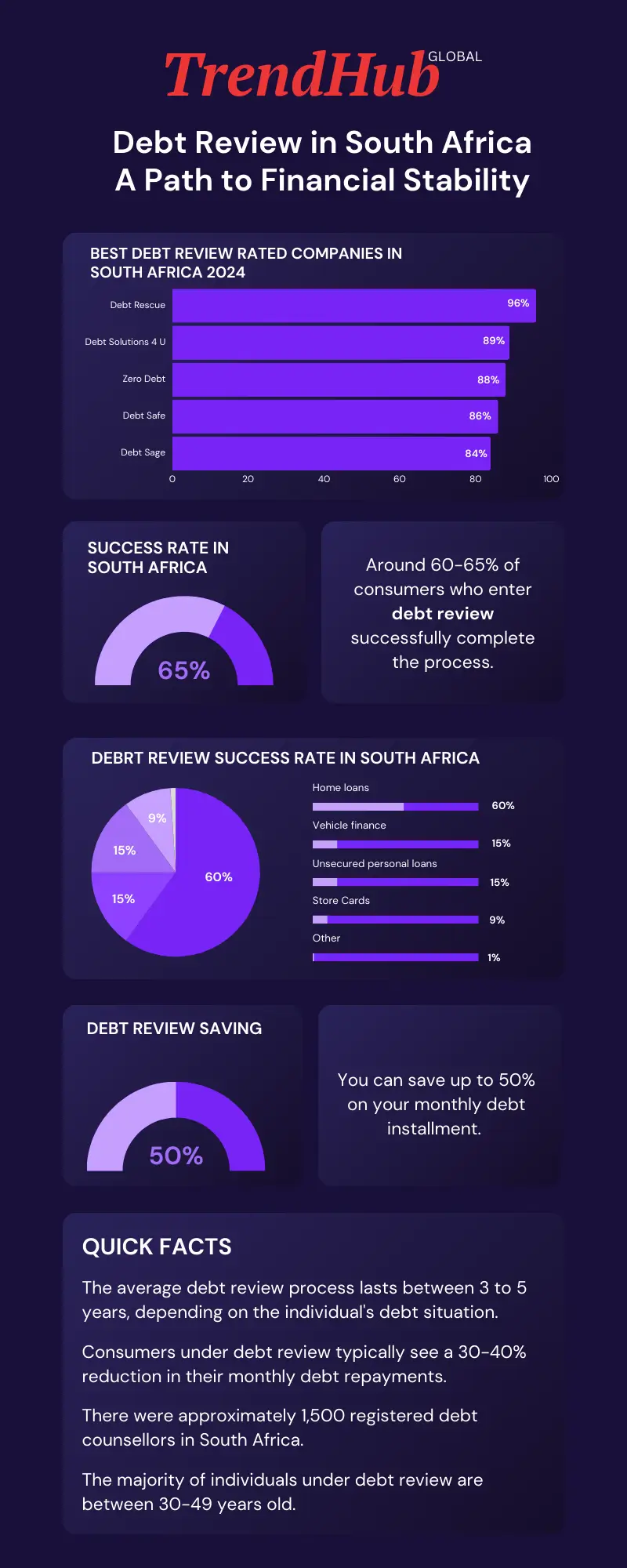 - 60% of those who do debt review complete the process and get back to financial stability.